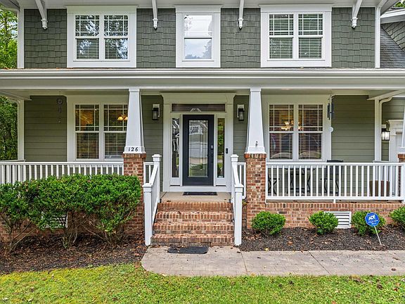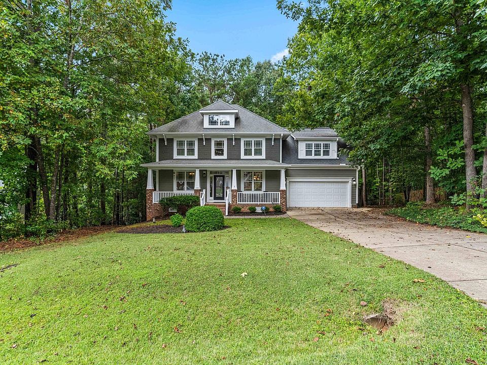 Welcome to 126 Geranium Way, a beautifully maintained 4-bedroom, 2.5-bath home nestled on a private .59-acre wooded lot in the sought-after Flowers Plantation community. This home offers the perfect blend of comfort, character, and convenience. Step onto the large covered front porch and into an inviting interior featuring hardwood floors throughout the main level, custom built-ins in the living room, and a bright, open layout. The spacious kitchen is equipped with granite countertops, stainless steel appliances (including refrigerator), a center island, and ample cabinetry. Enjoy serene outdoor living with a 24x12 back deck overlooking the landscaped, wooded backyard—perfect for relaxing or entertaining. The encapsulated crawl space adds long-term value and peace of mind, and the HVAC was replaced in 2022. Upstairs, the primary suite features a walk-in closet, dual vanity, separate shower and garden tub, and a private water closet. All appliances convey—including washer and dryer—and the home includes a 2-car garage. Located just minutes from downtown Clayton with easy access to Raleigh and Smithfield, this property offers the privacy you want with the convenience you need.