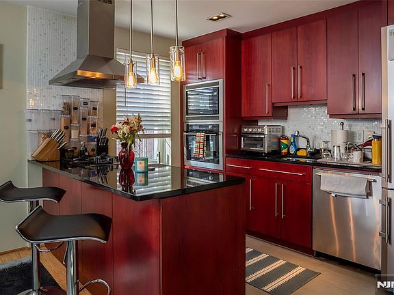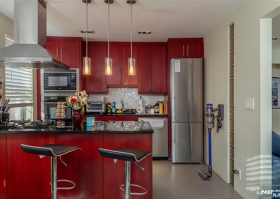 This thoughtfully upgraded 1BR condo is nestled in one of Rutherford's quietest enclaves — sought-after Kip's Farm. Ideal for first-time buyers, downsizers, or investors seeking a turnkey, design-forward space. Fully renovated in 2007 with approx. 847 sq. ft. of stylish living, the unit features bamboo floors, sleek radiators, and a reimagined layout that connects the kitchen with the living and dining area for a bright, open feel. The custom kitchen offers a Siemens gas cooktop, stainless steel appliances, and a space-saving design. Heated tile floors in the kitchen and bath add luxury, along with a towel warmer for a spa-like touch. The bathroom was expanded, and recessed WAC Lighting throughout earned this home a feature in a home design magazine and WAC Lighting's own catalog in 2008. A new ultra-quiet A/C was just installed in the main space, with a 2022 unit in the bedroom — no window units needed! Heat, hot water, one assigned parking space and storage cube are included in the maintenance fee. Commuter's dream: steps to NJ Transit #190 bus to NYC, just 8 blocks to the train, and close to vibrant downtown Rutherford's shops and restaurants. Easy access to highways and shopping. Don't miss this rare gem in Bergen County!