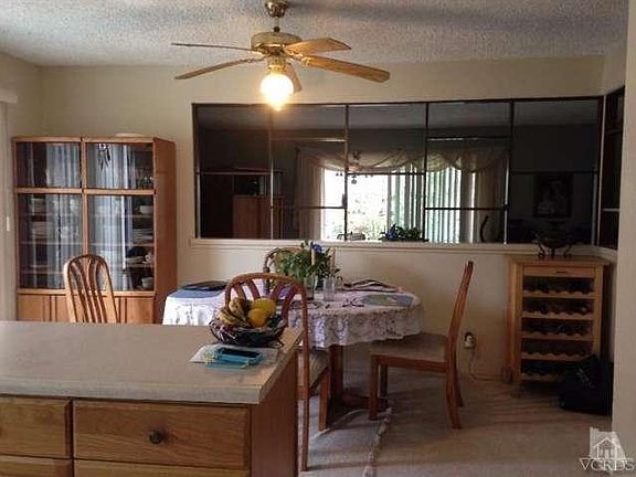 Use your imagination in this cutest of cute starter homes in West Simi; not your average Valley Vista (Greek Tract) rare model with fireplace in living room; family room/eating room. High-priced items complete - roof, AC/heater, dual pane windows, H2O heater, garage door, oak kitchen cabinets, stainless double sink, garden window, extra cabinets; newer vanities in the last few years; lots of producing fruit trees such as grapefruit, peach, avocado, lemon, apple, two compost piles, garden almost to harvest, cactii garden, above-ground spa, RV for your toy and view of mountains. Fire hydrant at edge of property may be good for insurance premium (check with your insurance person). Walk to neighborhood elementary school, shopping, restaurants, entertainment, financial institutions. One bedroom used as an office; master with its own bath. Priced under last closed comparable, this home is ready for you. You'll love it!