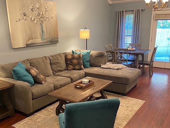 NEW LISTING IN HUNTERS OAK AT THE REZ. This 3/2 is located off of Old Fannin Rd at the end of a cul-de-sac with a 2 car garage and great curb appeal. As you enter the foyer and go into the den, the space is magnified by high ceilings and open plan to the casual dining and kitchen. Windows overlook the large, fenced backyard that is wooded behind for privacy. The patio and screened porches that run the length of the house, add so much space for entertaining. Call your REALTOR to see!!