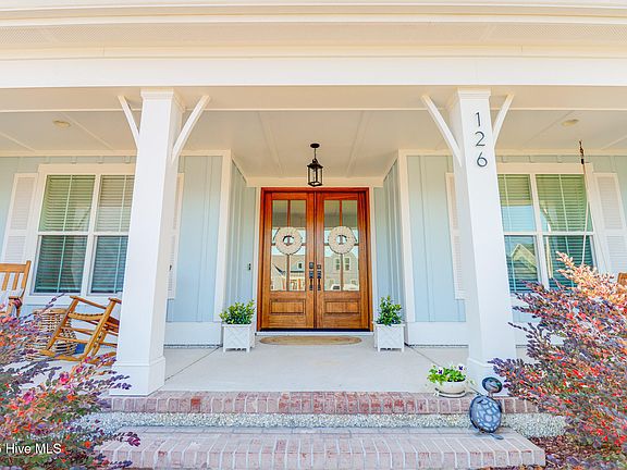 Discover refined coastal living in Salter's Haven, one of Hampstead's most coveted waterfront communities. Built by Legacy Homes by Bill Clark, this sought-after Montgomery floor plan offers over ~3400 sq. ft. of thoughtful design on a private, fenced lot surrounded by mature trees for serene privacy. The home features 4 bedrooms, 4.5 baths, and an upstairs flex space that can serve as a fifth bedroom, game room, or media area. A dedicated office and two-car garage provide ample room for work and storage. Inside, enjoy craftsman-style trim, and engineered wood floors throughout. The open living area showcases custom built-ins, a designer tile fireplace, and a screened-in porch for year-round enjoyment. The gourmet kitchen impresses with quartz countertops, upgraded cabinetry, a custom backsplash, wine fridge, and a spacious island—perfect for entertaining. Enjoy both a formal dining room and a cozy breakfast nook — perfect for everyday meals or special occasions. The primary suite offers coffered ceilings, dual walk-in closets (including one with laundry access), and a spa-style bath with a freestanding tub, tiled walk-in shower, and dual vanity. Tech-Ready Home! Equipped with Level 2 Smart Home and Safe Home structured wiring, a smart panel, and CAT 5 jacks with fiber connectivity—perfect for high-speed internet, home office, and streaming needs. Additional highlights include a bonus room with full bath, epoxy-finished garage, and a deep irrigation well. Residents enjoy resort-style amenities including a pool, clubhouse, fire pit, RV/boat storage, and a private marina with day docking and boat slips available for purchase periodically. With elegant finishes and a premier location along the Intracoastal Waterway, 126 Jackline Drive is the ultimate coastal retreat.
