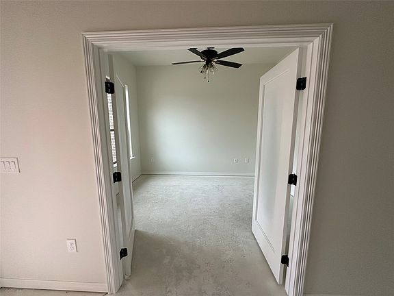Additional features include spray foam insulation, soft-close cabinetry, living room floor plug, ceiling fans throughout, landscaping package to include full sod and irrigation front and back, rock edge flower beds, and tree(s).