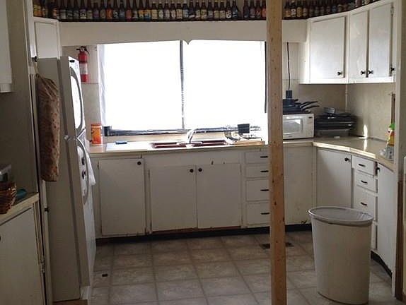 This was once a 2 bedroom home, but a wall was removed to make an open sitting room/laundry room. The home does need significant work including plumbing and roof. Has great potential if you have an open mind.