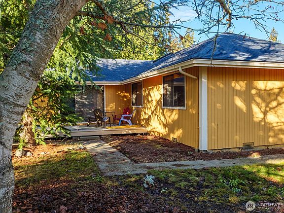 Nestled in a serene, park-like setting with majestic mature trees, this charming one-level home offers effortless coastal living. Enjoy resort-style amenities right outside your door: tennis courts, a welcoming clubhouse, swimming pool, and private community beach access on the Strait of Juan de Fuca. Inside, you’ll find a bright and spacious 2-bedroom, 1 3/4 bath PLUS a den/office with a separate dining area, a cozy living room and a separate family room with outdoor access, woodstove and built in bookcases— ideal for relaxing or entertaining. An attached garage and low-maintenance landscaping make this home as practical as it is inviting. New stove & dishwasher. Perfectly positioned to enjoy everything Sunland has to offer — welcome home!