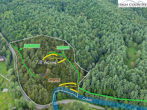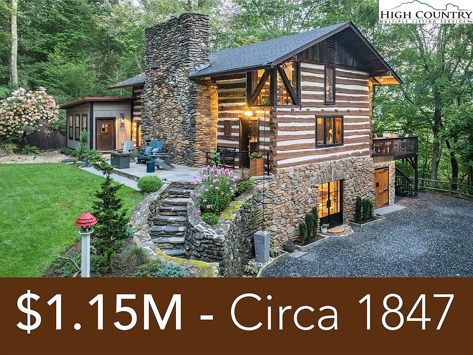Authentic 1847 Chestnut Log Barn with Modern Design Elements! This unique beautiful mountain home sits on a secluded 7.8+ acres (UNRESTRICTED) with close proximity to the best of the high country. Described by a local expert as “the finest authentic log home in Ashe County”, this circa 1847 Chestnut Log Barn was converted to a residential cabin in 1976 adding stone from the base of Mt. Jefferson and has been thoroughly and meticulously renovated by the current owners. Thoughtfully incorporating modern elements to compliment the rustic authentic character and unique features, this home is truly one-of-kind. Entering the home from the bluestone terrace through an elegant custom door, you will be immediately delighted with the mixture of elements and textures. The Kitchen is remarkable in its blending of Old and New, retaining the character of the old log structure complimented by new cabinets, counters and appliances. The center ceiling opens to the modern loft above (originally 1 of the 2 hay-lofts) accessed by hand-hewed/pegged steps and lined with wormy chestnut paneling. The Kitchen is adjacent to the open Great Room / Dinning Room. This is a truly unique & impressive space. With huge timber walls, soaring 16’-18’ ceilings complimented by a light fixture from Restoration Hardware, a glass walled dining area and a massive 16’ wide stone wall with a large wood-burning stove – all combining to give the space an amazing ‘lodge-like’ feel that is unmatched in a more traditional “log cabin”. Wormy chestnut paneling surrounds the landing area connected to the Great Room providing access up to the second bedroom, a coat closet, door to the Primary Bedroom, another door leading downstairs and a full bathroom w/ flooring from an old bank & glass blocks from the original Ashe Cheese Factory. The primary bedroom is a clean & modern sanctuary with rustic accents. Expanded & remodeled, this space is comforting in its neutral tones and warm antique & architectural accents. The old wooden door holds stained glass from the early 1800s, along w/ numbered nails from the Virginia Creeper R.R. This sizable room has plenty of windows and room enough to sit by the fireplace. It has upgraded closets, a private bathroom, and offers the sound of the stream from the backdoor as well as direct access to the private patio & Hot Tub. The Lower Level transitions nicely with chestnut barn boards (original to the barn’s ceiling) leading down stairs to utilities, storage, laundry, a custom desk area, a third full bathroom, and the third bedroom. The 3rd BR includes a Murphy Bed; this room could be configured in many ways (including a game-room with bunkbeds). An additional bard/shed structure has been partially remodeled to serve as a year ‘round office or studio. Outdoor Living areas are numerous including a blue stone terrace and a wrap around deck which offers views and sounds of the beautiful stream below. Relaxing, reading, socializing, eating or napping . . . the sound of the stream is a constant. The land (UNRESTRICTED) is a secluded & magical 7.8 acres, with miles of trails meandering through mature forests and laurel groves, an open space on the hill with a huge fire-pit, and approximately 330’ of South Beaver Creek - home to wild Brown & Brook Trout. Great Location: Approx. 5 Mins to New River access, 7 mins to Ingles, 10 mins to West Jefferson, 10 mins to the BR Pkwy, 30 to Boone, mins to Blowing Rock.