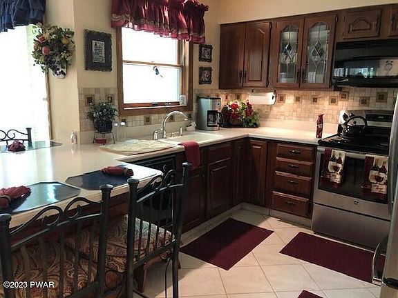 Tanglwood Lakes Contemporary Home Privately situated on 2.14 acres with Lake Rights to Lake Wallenpaupack and Tanglwood Lakes. Featuring a spacious modern kitchen w/Corian countertops, Breakfast Nook, Living Rm w/custom FP, formal Dining Rm, Den, Family Room, Game Room, 4 Bedrooms (including a Primary Suite), 3.5 Baths, Two separate 25 ft wide garages -one oversized with extended bumpout for combined 25ft boat on trailer, Andersen windows, 2''x 6'' construction, oak staircase w/landing, security alarm, dawn to dusk outside lighting, paved driveway, back-up generator, Central station fire alarm and a two position front and rear surveillance camera, Halogen recessed lighting throughout house, Two Zero clearance wall mounted heaters with thermostats, fan and more., Beds Description: 2+BED 2nd, Baths: 1 Bath Level L, Baths: 1/2 Bath Lev 1, Baths: 2 Bath Lev 2, Eating Area: Formal DN Room, Eating Area: Modern KT