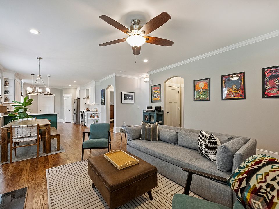 Welcome to this stunning Craftsman-style home tucked in a quiet Biddleville/Smallwood pocket. Designed with comfort and convenience in mind, it offers 9-foot ceilings on both levels, graceful archways, and rich hardwood floors. The chef's kitchen is a showpiece with quartz countertops, farmhouse sink, stainless steel appliances, including gas range with hood, microwave drawer, and soft-close cabinetry. The main-level primary suite feels like a spa with double vanities, soaking tub, frameless rain shower, and large walk-in closet. A second bedroom on the main is ideal for a home office. Upstairs, three bedrooms provide space for family or guests. Outside, enjoy a private fenced yard and rear patio.