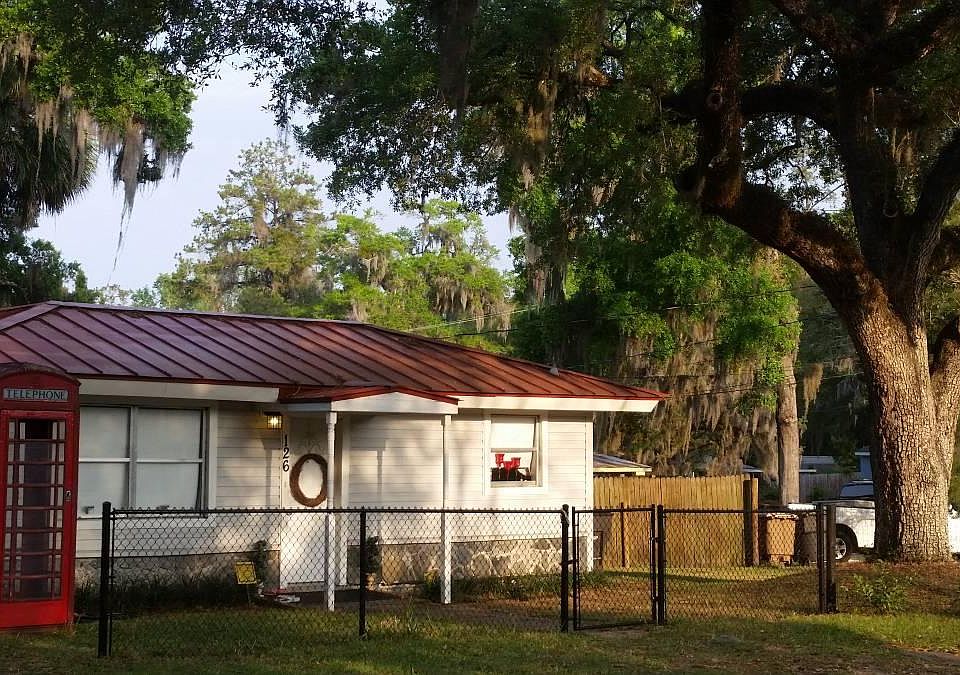 Adorable roomy one bedroom house walking distance to Downtown Ocala. Have the whole place to yourself. Shops and restaurants right outside your door. Includes car canopy, 8x10 shed, washer and dryer, partially fenced yard, security lights, large sliding glass door opens to small yard in back. Central a/c unit. Large kitchen.
