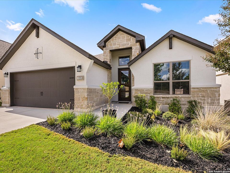 This charming home offers one of the most stunning views in all of Boerne, perfectly blending comfort and style. Enjoy relaxing evenings or morning coffee on the extended patio while taking in the breathtaking scenery. The landscaped backyard creates a private retreat, ideal for both entertaining and unwinding outdoors. Inside, you'll find 3 spacious bedrooms and 2 bathrooms, plus a dedicated office, perfect for working from home, homework space, or a quiet retreat. The open concept layout flows seamlessly from the living room to the kitchen and dining area, making everyday living and entertaining a breeze. Nestled away in a quiet cul-de-sac, the home offers privacy and exclusivity. Adding to its charm, outdoor track lighting has been thoughtfully designed for year-round ambiance-perfect for permanent holiday lights or evening get togethers. Inspired by artful design and the natural charm of Boerne, this master-planned neighborhood blends resort-style living with small-town warmth. Enjoy a vibrant lifestyle with scenic trails , resort style pools, pickleball courts, and sand volleyball courts perfect for friendly competition and outdoor fun. Families will love the playground, while fitness enthusiasts can stay active in the modern fitness studio. From tranquil green spaces to elegant architecture, Esperanza invites you to live in luxury! From the warm, welcoming interior to the thoughtful details throughout the neighborhood, this home is ready for your family's next chapter!