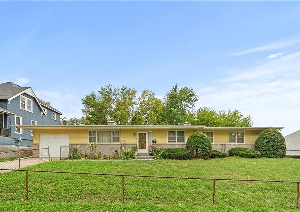 Come see this inviting 4-bedroom, 2-bath ranch in the heart of Pendleton Heights. Full of mid-century charm and modern updates, this home welcomes you with a sunny yellow exterior, brick accents, and mature landscaping that give it timeless appeal. Inside, the spacious living room features large windows, crown molding, and a decorative stone entry detail that sets a warm tone. The bright kitchen offers classic cabinetry, stainless-steel appliances, and a tile backsplash, with hardwood floors flowing into the adjoining dining and flex spaces. French doors lead to the backyard—perfect for entertaining or relaxing outdoors. Downstairs, a huge unfinished basement offers endless possibilities for storage, hobbies, or future expansion. Major updates provide peace of mind with a 4-year-old roof, 2-year-old furnace and AC, 1-year-old water heater, and a sewer line replaced just two years ago. Set on a generous lot in one of Kansas City’s most beloved neighborhoods, this home blends character, comfort, and reliability. Come see all that Pendleton Heights has to offer!