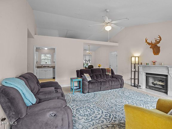 Take a peek at this property in the Arcadia Village neighborhood nestled right in the cul-de-sac! With the open floor plan, cozy fireplace, and lots of natural light, this living room is sure to check off every box. Head over to the kitchen to check out all of the storage opportunities, large pantry, breakfast bar, gas stove, and great views of the back yard. The owner's suite offers a private ensuite with a large vanity, tub/shower combo, and walk in closet. Your guests will find all the comfort they desire between the two large guest rooms and shared guest bathroom. Enjoy your evenings on the back patio to grilled out while enjoying the convenience of the fenced in yard. Located minutes from Downtown New Bern, CarolinaEast Medical Center, and all of the great shopping and restaurants offered! *I43 Connector Project Is currently underway on the main entrance to the neighborhood*