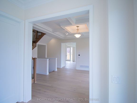 Corner detached homeCrown moldingsWaffle ceilingHardwood flooringPot lightsHis and her walk-in-closet