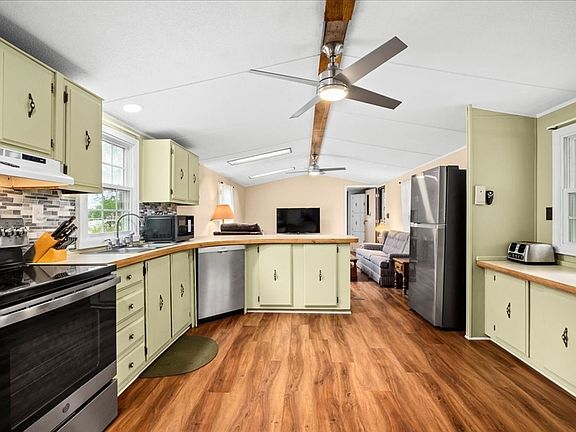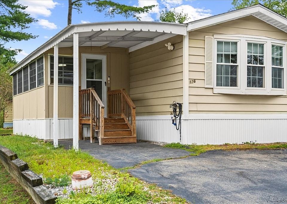 Nestled at 126 Pine Ave, in the highly desirable Sturbridge Co-Op community, this residence presents a unique opportunity to embrace comfortable living within a vibrant community This home has been freshly painted throughout and has BRAND NEW vinyl FLOORING throughout the living room, kitchen, and baths with new carpets in the two bedrooms. The kitchen has new overhead lighting and ceiling fans; newer dishwasher and range. Range, refrigerator, dishwasher, washer and dryer are included in the sale for the buyer's convenience. Harvey vinyl replacement windows give a very updated look and increase the home's efficiency. Primary bathroom has an updated walk-in shower. Second full bathroom has a tub and shower. Enclosed porch has both screens and windows to extend the seasonal use. Exterior storage shed for gardening tools and equipment. Generator plug is ready to use. BRAND NEW: roof, air conditioner, and oil tank. This is an over 55 community. $25,000 park share not included in price.
