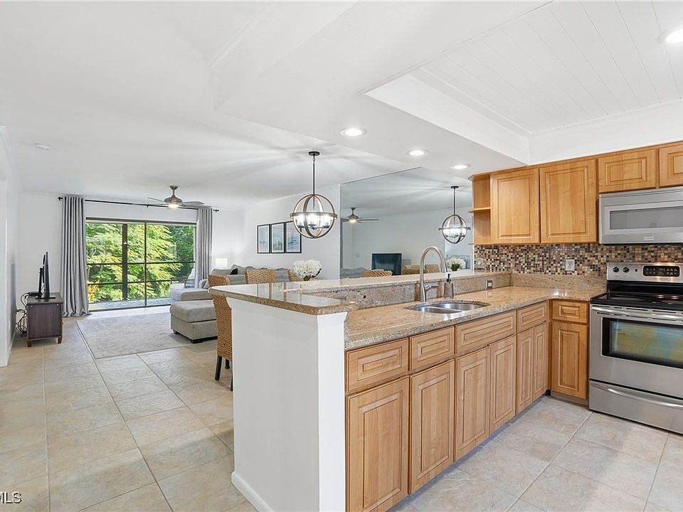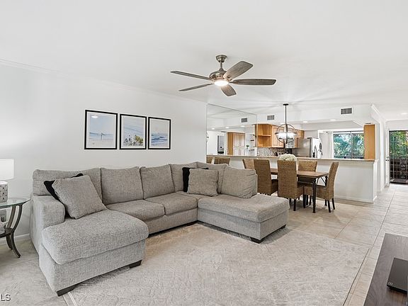 Welcome to 126 Pinebrook Drive! Step into this open and airy two-bedroom, two-bathroom condo- offering everything you need! As you enter, the spacious guest suite sits to your left, featuring an updated bathroom and a large walk-in closet. The main living and dining areas offer an open-concept layout — ideal for entertaining or simply relaxing. The primary bedroom is generously sized, complete with a walk-in closet and an updated bathroom featuring a shower/tub combination. Every inch of this home has been meticulously maintained by its current owner. The living space extends outdoors with an expansive patio overlooking tranquil greenery — the perfect spot to enjoy the peaceful sounds of Southwest Florida. Additional highlights include a large storage area on the back patio, two assigned parking spaces (one covered), and close proximity to the community pool and spa. You’ll love being just minutes away from beautiful beaches, fine dining, and the Bell Tower Shops. Pinebrook Lakes is fully gated with two entrances (main gate off of Daniels Parkway and residents entrance located off of 41). This property truly lives large and offers the best of Florida living!