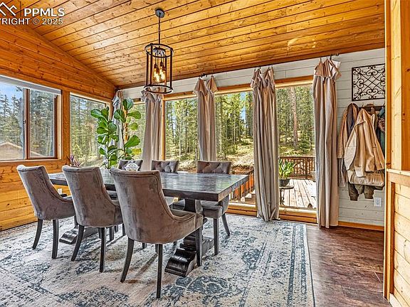 This one of a kind raised ranch style home in peaceful Spring Valley is sure to WOW you with it's undeniable charm, modern upgrades, and cozy mountain feel. Overflowing with natural light, the open concept main level features top to bottom natural wood paneling a sky light, and a cozy gas fireplace. Enjoy an upgraded kitchen complete with stone counters, soft close cabinets, stainless steel appliances, and a spot to chill your favorite beverages. Also on the main level, enjoy a dining area complimented by floor to ceiling windows, awaiting your new favorite memories and tableside stories. The main level primary bedroom hosts a custom built in vanity and built in closet system complemented by warm accent lighting. The main level bathroom is nothing short of amazing; showcasing natural stone and modern tile, with the perfect pop of color. Downstairs, you'll find two bedrooms, a full bath, and an additional living space room with a wood burning fireplace. Don't forget about ample outdoor living where the possibilities are truly endless. On the property, you can enjoy the outdoors on your main level deck, extra seating underneath the deck, or get cozy by the firepit in the backyard. Let your four legged companions roam free in this mountain setting with a fully fenced backyard! Take advantage of the NEW 2 car detached garage with oversized parking spaces and functional work bench. Partake in all that Spring Valley and the community lake has to offer such as fishing, kayaking, canoeing, paddle boarding, or a good game of beach volleyball.