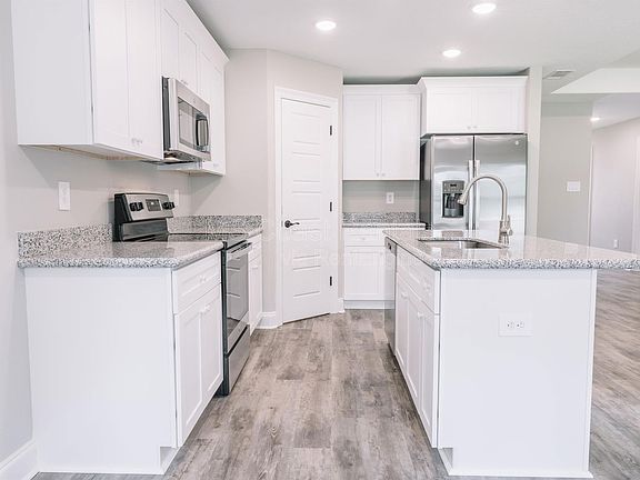 Inside, you'll find luxury vinyl plank flooring, white cabinets with soft-close hinges, and an island perfect for hosting gatherings. The kitchen sparkles with granite countertops and comes complete with new appliances.