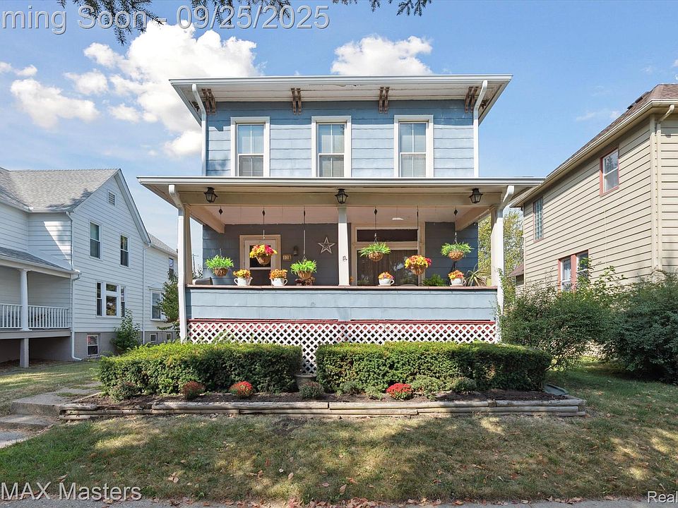 Step back in time in this grand old home. There is a nostalgic covered porch on the front where you can relax and say hi to neighbors passing by. Once inside there is a foyer with a lovely staircase going upstairs and a large living room to the right. Both the downstairs and upstairs have impressive tall ceilings. Hardwood floors adorn the main level where you will find a parlor, dining room, bedroom and a quaint kitchen. The dining room is large enough to gather the whole family and the parlor and living room adjacent to that leave plenty of space for entertaining. Upstairs there are 2 large bedrooms and a hall with a space at the end large enough for an office area or small reading nook. The rear bedroom has a door (currently disabled) that once led to a Juliet balcony. The basement has surprisingly high ceilings for an older home. It is unfinished but with larger windows and open space, it could be nicely finished. It also has a toilet installed so a bathroom could be easily created. Outside you will find a large yard. There is access from the ally, so you could easily put a garage back there without taking up your whole yard. This home has surprisingly good bones for its age. If you love old world charm, come take a look! Appliances included. Newer boiler, decent windows, circuit breakers and some updated electric. Please give advanced notice for showings. Buyer to assume responsibility for city inspection and C of O. Some items have been done. Measurements are approximate. Please verify if important. No sign in front.