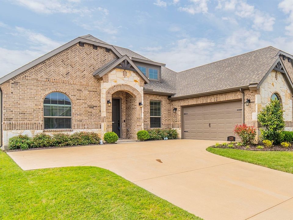 HONEY STOP THE CAR! This barely lived in beautiful home located in the sought after Woods of Red Oak! This immaculate very well maintained home was built in 2018 offers about 2374 sqft, 3 large bedrooms with split bedroom floor plan and lots of storage space. Open floor plan concept has a huge kitchen with granite counters, stainless appliances, huge walk in pantry, granite island, eat in kitchen area and opens to a large living area with wood burning fireplace and also has a flex room to use a formal dining or a sitting area. Oversized primary bedroom with sitting area, large garden tub, walk in shower with bench, double sinks, and gigantic walk in closet. Home also features, engineered hardwood flooring with carpet in the bedrooms, ceiling fans, and planation blinds throughout. This beauty has a full wood privacy fence with covered patio, gutters, 2 car garage, and radiant barrier. This is priced to sell and is a true must see!