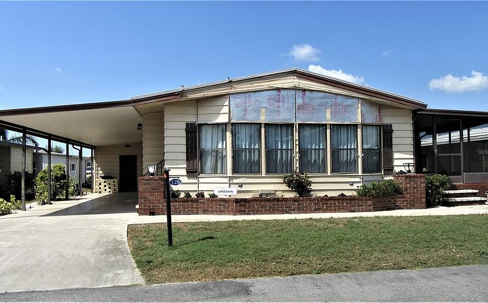 Don't miss this opportunity to own a home in the highly desired 55+ community of Lazy River Village! This extra large home with an amazing floor plan is located in the pet's allowed area of the park and is looking for the right owner to restore it to it's original glory. The living space is huge with an open concept kitchen, family room and wet bar, perfect for entertaining. It also features a light and bright formal living and dining area, also open to the kitchen. The kitchen itself has tons of cupboards and an island with a Jenn Air cooktop. A large Florida room is located off of the family room and has acrylic windows and a mini split air conditioner. It also features a nice screen porch at the front of the home. The master has TWO huge walk in closets and dual sinks in the ensuite bath. The guest bedroom is light and bright and features an ensuite bath. The carport is long enough for two or three cars and the shed is good sized with a new washer and dryer and a work bench. This home suffered minor hurricane damage to the siding, soffits and a few screens and is being sold as is. AC is 5 years old, membrane roof is 2008 and recently inspected and found to be in good condition, Lazy River is a 5 star resort like community with a myriad of activities and amenities to keep you busy, or just kick back by the beautiful pool. Conveniently located near shopping, dining, beaches, churches, Atlanta Braves ball field and the new Wellen Park downtown area. Call today for your personal tour.