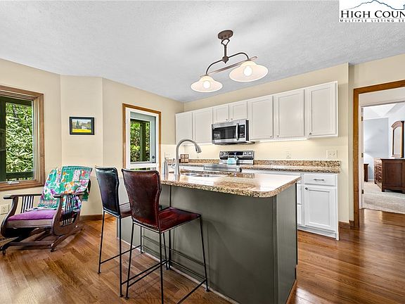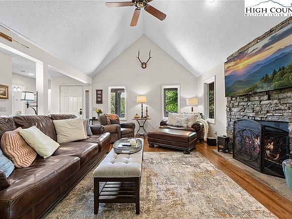 Immaculate 3BR/2BA furnished home offering One-Level Living in the Heart of Banner Elk. Located in the highly desirable Crooked Creek community, this beautifully maintained and fully furnished home offers easy, one-level living walking distance to downtown Banner Elk’s dining, shopping, and parks. The home features 3 bedrooms, 2 full bathrooms, and an open floor plan with cathedral ceilings, oak hardwood floors, and a stone fireplace with newly replaced gas logs in 2025. The kitchen and primary bathroom have been recently updated, both bathrooms are tiled for durability and style. Over the past few years, the sellers have made numerous improvements to enhance the home's functionality and curb appeal. The driveway was newly paved and includes an additional parking spaces added in 2023. The exterior of the home was painted in 2020, and the front deck was extended by three feet to allow for more outdoor living space. The interior is freshly painted along with new carpet with level 7 padding. New stainless steel appliances in 2023 and a new refrigerator in 2025. Kitchen cabinets refinished and painted in 2023. The attic has been floored and fitted with shelving, providing valuable extra storage. The property has also been professionally landscaped to complement its mountain setting. Enjoy outdoor living on the spacious deck, featuring a new front deck couch and gas grill—perfect for relaxing while soaking in stunning sunsets and views of Beech Mountain. The deck wraps around to a fenced-in backyard, ideal for entertaining or unwinding in a peaceful setting. The crawl space has been sealed with plastic barrier and furnace replaced in 2023. This move-in ready home is a rare find in one of Banner Elk’s most established and sought-after neighborhoods.