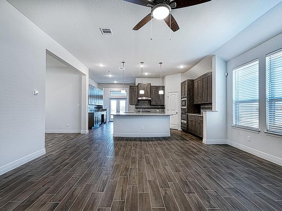 Beautiful Open kitchen with Quartz counter tops, an abundance of cabinet space, built-in appliances, satin nickel pulls and pendant lights. The main areas are ideal for entertaining with a stone fireplace, wood-plank tile floors in main areas plus the study. Attractive exterior finishes. Backs up to a catch-and-release pond for that added privacy out back with a covered patio. Great location, aprox 8 miles to shopping, entertainment, restaurants and Lake Georgetown. Great Schools and literally minutes to the HEB Grocery store. Landscape maintenance front/back included in price of the lease. Move in Ready.... Welcome Home!