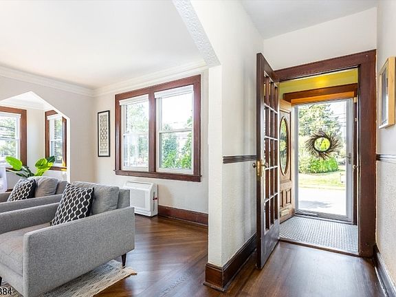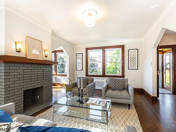 This light-filled stylish Center-Hall Colonial, one of the largest in the vibrant Hilton neighborhood with over 2,000 sq ft, is thoughtfully updated while maintaining period charm. The home welcomes you through a classic entryway to light-filled spaces framed by high ceilings and refinished hardwood floors with distinctive ribbon inlay detail. First flr: large DR is great for entertaining, updated kitchen w new backsplash, granite countertops, s/s appliances, and two walk-in pantries for great storage, plus access to the back patio. This level also includes powder room and bedroom perfect for guests or flexible living. Second flr: three large bedrooms surround a bright landing, plus an updated full bath. The primary bedroom features a spacious cedar closet. Third flr: walk-up attic w great expansion potential. Lower lvl: spacious rec room, full ba w/jacuzzi tub, laundry, storage, and bonus room! The private backyard includes a paver patio and custom shed. Prime location steps to DeHart Community Center, park/playground, and blocks from Maplewood's hottest dining destinations including Pallet Brewery, Artie's, Perla, Porta Rossa and more. Updates include: new fully electric heating/cooling system with central A/C on the second flr and multi-zone cooling throughout the first floor and bsmnt, freshly painted interior, new lighting, refinished floors, fully insulated attic/walls, tankless WH, PSEG approved EV charger. Classic charm meets modern convenience! Welcome Home!
