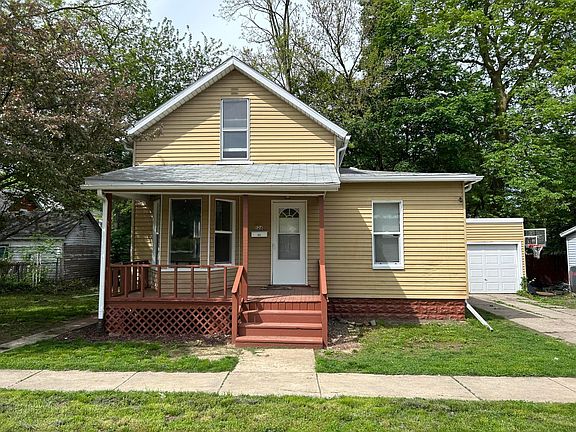 New Gutters & Downspouts, there is a side porch with entry door into the kitchen. Front door & side porch door have new screen doors installed. There is a 1-car garage. FRONT & SIDE PORCHES OFFER SITTING ENJOYMENT IN THE SUMMER. Convenient to downtown shopping, restaurants & amenities.