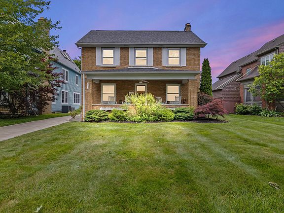 Spacious kitchen running the width of the house including an eating area and butler's pantry. Wood burning fireplace in the living room, hardwoods floors add to the charm (hardwoods believed to be under carpet on the staircase and second floor). Wide staircase New dimensional shingle roof on the house and garage the end of 2023. New furnace 2024. Finished area in the basement. Oversized 2-car garage 24x24 built in '04. Concrete driveway from street to alley