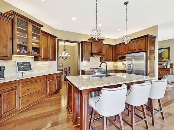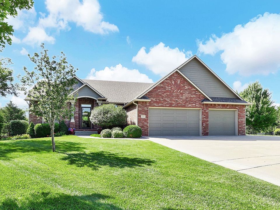 Come and take in this exquisite wooded, lake front home in Auburn Hills' prestigious Woods Addition! This meticulously maintained home and private lot are a rare find. This home boasts breathtaking views, mature trees, and lush landscaping, creating a private oasis in the middle of west Wichita that makes every day feel like a vacation! The interior of the home is not lacking in detail and superior craftsmanship. With over 2200 square feet on the main floor, the finishes include beautiful Brazilian Walnut floors, spacious open kitchen with walk-in pantry, gas/convection stove, hearth room and dining with glorious floor-to-ceiling windows, split master bedroom and bathroom with a soaker tub, walk in shower, and an oversized walk-in closet, 2 additional bedrooms on the main floor, plus an office with french doors! The fully finished walk-out basement has a large family room with a fireplace and wet bar, 2 additional finished bedrooms, full bath, storage, and a finished workout room! Efficiency is at its best with the geothermal heating and air unit, custom window treatments, 3-car garage, sprinkler system and well, low specials, and walking distance to the neighborhood pool. This home is an incomparable find and will not disappoint!