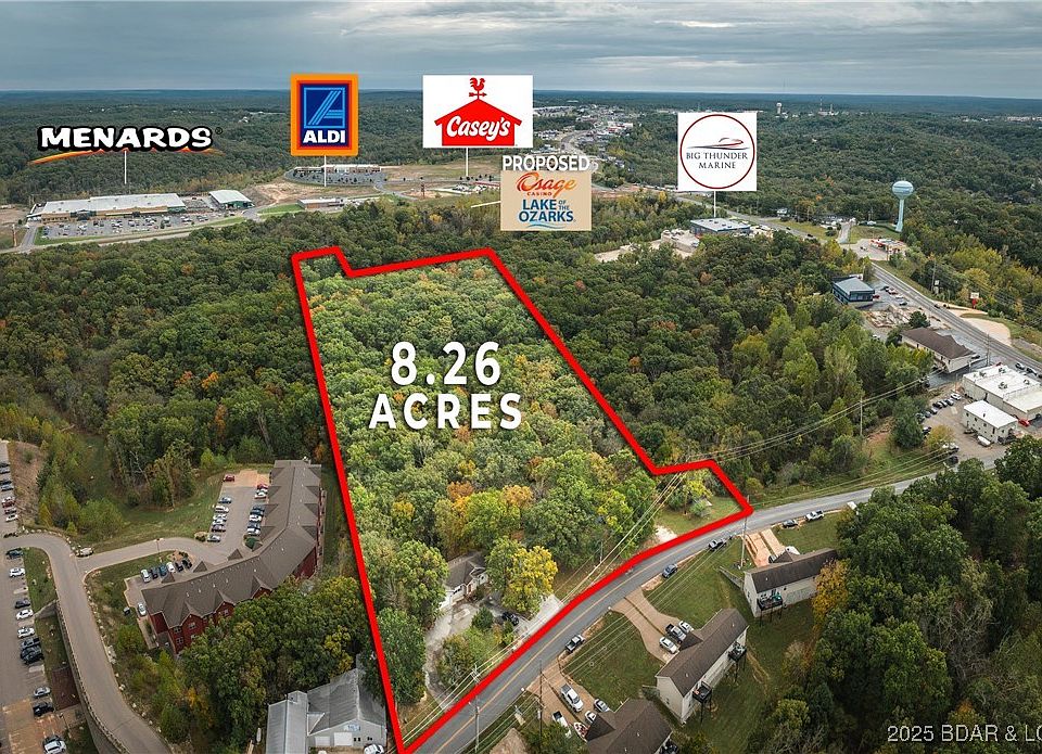 Prime 8.26-acre property perfectly positioned for future growth and development! This property offers an exceptional opportunity for developers or investors looking to build much needed apartment complexes, multi-family housing or mixed-use projects in one of the fastest-growing areas at the lake! Located in the heart of Lake Ozark, this property sits right off of Bagnell Dam Blvd and is within walking distance to popular restaurants and shopping, Encore Lakeside Bar & Grill, and near the proposed site for the new casino. Just minutes to Bagnell Dam Strip, this location offers unmatched convenience and visibility! The property currently features a 3-bedroom, 3-bathroom ranch style home spanning 1,972 Sq Ft with two additional structures (Both are inhabitable) that could be fixed up for additional rental income. With a strong demand for new housing in the area, this site provides an ideal opportunity for developers/investors! Schedule your showing today!