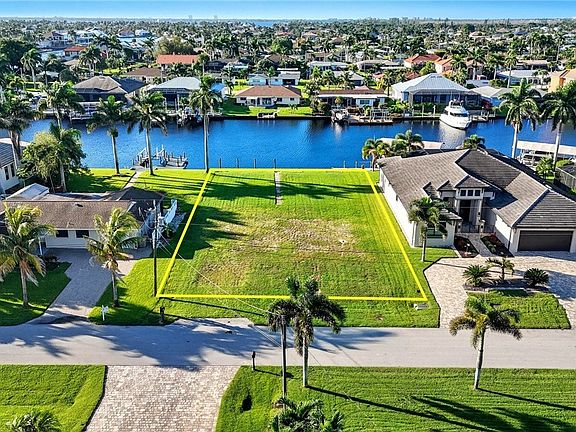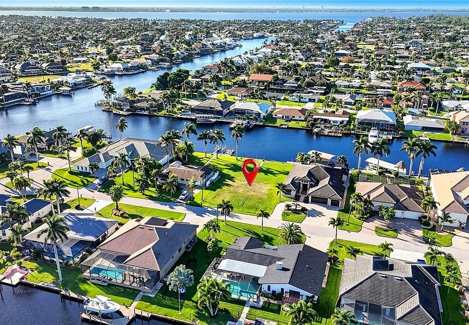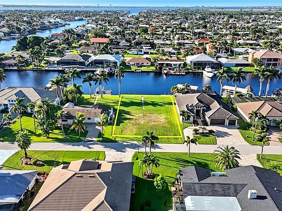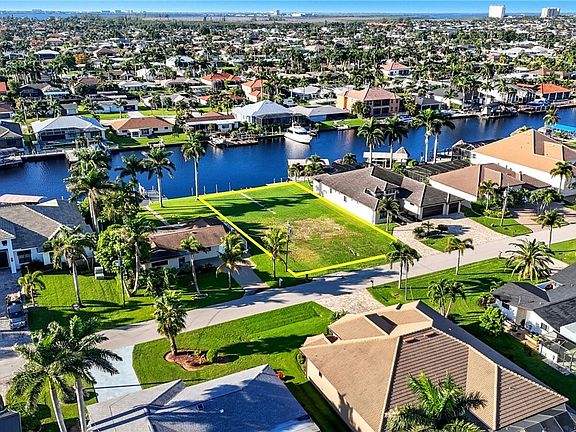 Unique opportunity to build your dream home on one of the few remaining true sailboat-access lots in Cape Coral’s coveted SW waterfront corridor. This oversized 13,000+ sq ft homesite offers an impressive 190-ft wide canal with a 14-ft deep water channel—just 15 minutes to the river with no bridges or locks to slow your route to open water. Nestled at the end of a quiet cul-de-sac of waterfront homes, this prime location offers both privacy and prestige. The southern rear exposure provides sun-filled days and stunning sunset reflections off the water—perfect for a future resort-style pool and outdoor living space. Enjoy the convenience of being centrally located between Cape Harbour and Tarpon Point Marina, where you’ll find waterfront dining, shopping, and boating amenities at your fingertips. With a seawall already in place, your build process is simplified and your vision can take shape immediately. Opportunities like this are rare—secure this exceptional property and design the luxury waterfront residence you’ve always imagined.