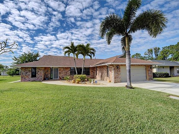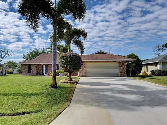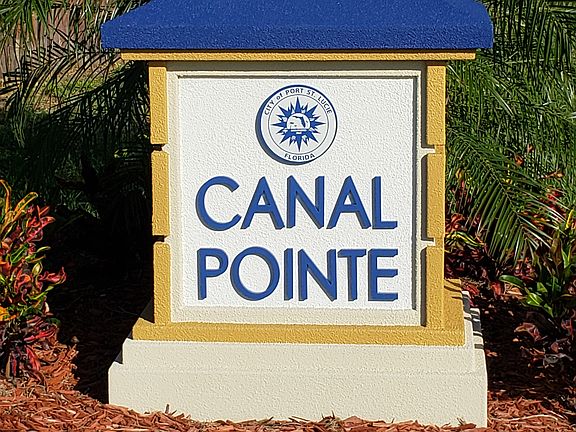 You have to see this one! This outdoor space is perfect for watching the sunrise and the sunset. This home is located in Canal Pointe, South Bayshore area. Over 3,500 sqft under roof, solar heated pool with water feature, variable speed energy efficient pool pump, beautiful pavers on patio, cabana bath, serve-through kitchen window to bar area, privacy fence, irrigation system, concrete stucco and brick, some furniture included. Lush, mature, tropical landscaping. Eat-in kitchen and breakfast bar, touch-activated faucet, pantry, vaulted ceilings and satillo tile in the main living space, stained glass at entry, skylight in guest bath, berber carpet, Murphy bed in guest room, dual full-house exhaust fans, utility sink and RO water in garage, indoor laundry room. Owners' suite features dual sinks, walk-in shower, walk-in closet, slider doors to rear patio. Close to public parks, public boat ramp, and quick access to Florida's Turnpike. Just minutes to Palm City or to I-95.