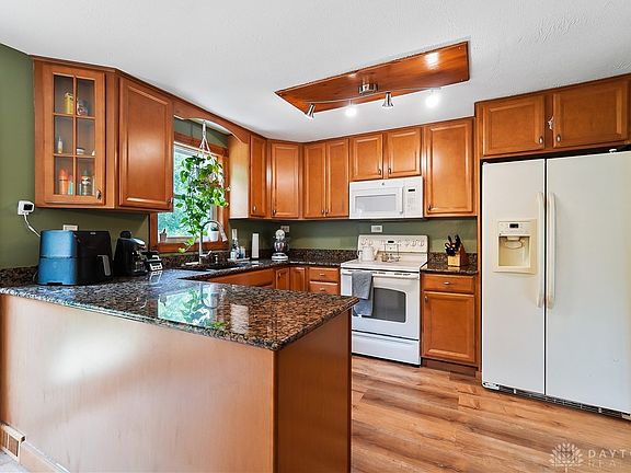Move in ready split level home in Moraine with country charm. You aren't going to want to miss this well kept home that has had many updates through the years. The main floor has lvp throughout, with a nice sized family room, dining room open to the kitchen with bar seating and room for a table, and nice sized kitchen with granite countertops and beautiful newer cabinets. Up the stairs 3 bedrooms are tucked out of the way with the guest bath. In the full finished basement you'll find large separate spaces for entertaining or relaxing. Minutes from 75, you will be have easy access to shopping and dining of your choice.