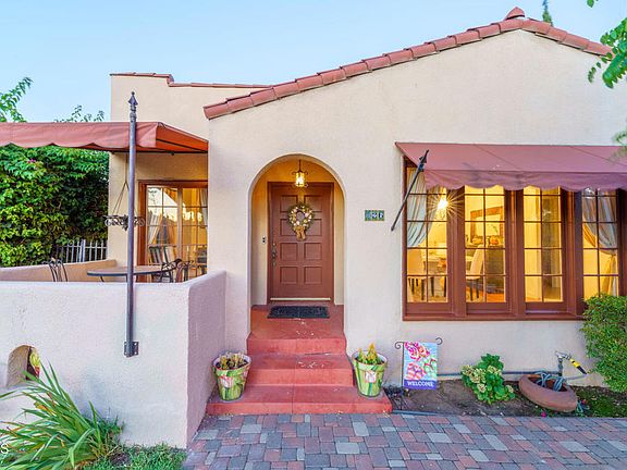 Charming Spanish home in highly desirable North San Gabriel location, just blocks from San Gabriel Country Club, San Marino and local shops and eateries. This quaint home offers old world charm, updated for today's living and has been registered as a historical home with the Mills Act, providing substantial property tax savings!An inviting flower- lined walkway welcomes you to a private front patio, perfect for al fresco entertaining, and covered entry. Once inside, the formal living room features barrel ceilings, original hardwood flooring, fireplace with Batchelder tile surround, and decorative arched nook. A character archway opens to the formal dining room with custom chandelier and a wall of windows allowing for natural light and overlooking the front yard. The adjacent breakfast room is bright with multiple windows and leads to the cook's kitchen with stainless steel appliances, sink with newer faucet and wood cabinets. The separate laundry room has additional storage and side door leading out to driveway and rear yard.The center hall offers an abundance of storage with 2 closets plus a linen closet, a hall phone nook and leads to the 2 generously sized bedrooms, both with walk-in closets, and full hall bathroom with shower over tub, and large vanity. The spacious backyard is fully landscaped with a grassy lawn and has endless possibilities for an entertainers' dream. The yard is fully enclosed with a one car garage with automatic door opener and gated driveway.Additional features: Newer Central air and heat, Newer roof, Security system, Recessed lighting, Crown moldings, Newer garage door,,Registered with the Mills Act Program for property tax savings, Excellent public school system + much more!