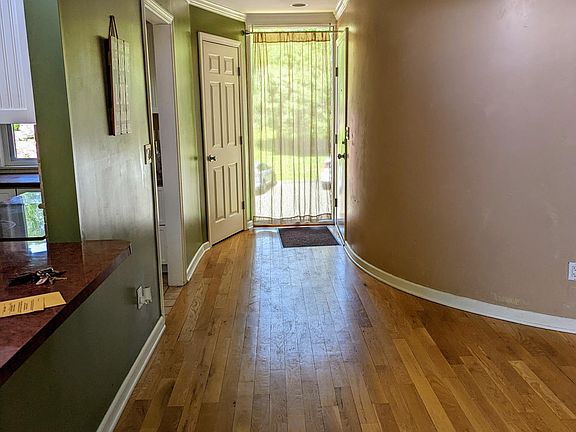 Welcome home to an amazing, spacious, open-floor-plan, great room with soaring cathedral ceilings, a stunning full-wall, floor-to-cathedral-ceiling brick, working, wood-burning fireplace and glorious triangular cathedral, transom windows that illuminate the entire space. This spacious, open, great room starts with an amazing semi-circle accent wall that guides you through the foyer into the open dining area. Featuring both a dining room section and an adjoining breakfast bar, with cool, vintage Formica countertops, the dining area is airy and open to the kitchen.