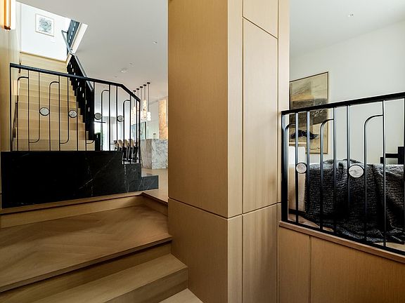 Striking calacatta marbleMarble-and-metal staircaseStone-crafted lightingRadiant floor heatingPrivate urban oasisDual composite decksCustom-built outdoor kitchen