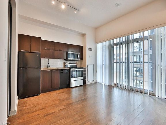 Tremendous location in the heart of the financial and entertainment district. Directly across the street from the Shangri-la and conveniently located close to the subway, the Path, theatres, Roy Thomas Hall, restaurants- truly a prime location. One bedroom unit offering 539sqft of living space. Open concept kitchen and living. The building offers a gym, steam room,jacuzzi, guest suites and the exclusive 16th floor offers a rooftop patio with BBQ'S and plunge pool.