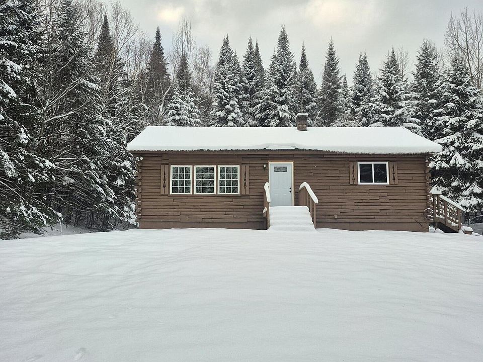 Renovations include all-new kitchen cabinets, updated flooring throughout, new windows, and new exterior doors, giving the home a fresh, clean, and efficient feel. The log-style exterior and surrounding evergreens create a true Maine retreat, whether you're looking for a year-round residence, vacation escape, or investment property.
