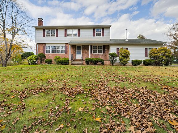 Looking for privacy and space close to town? This classic Colonial offers 4 bedrooms, 2 full baths, and sits on a level .90-acre lot. The main level features a bright living room with a wood-burning fireplace and a large picture window overlooking the front yard, flowing easily into the dining room. The kitchen includes a breakfast bar and built-in pantry storage. A spacious family room with a cozy wood stove and skylight fills the space with natural light, while the adjoining sunporch, featuring two exterior doors, opens to the backyard. Upstairs, you'll find four bedrooms, all with hardwood floors (including one currently carpeted), and a full bath with double sinks and a tub/shower combo. The large, level lot provides ample space for outdoor entertaining, gardening, or play. Additional highlights include a 2-car garage, full walk-out basement with laundry area (washer & dryer convey) and utility sink, plus an outdoor storage shed. While the home would benefit from updating, it offers an excellent opportunity to personalize and create your dream home in a desirable location. Bring your vision and make this special property shine! Hardwood flooring under the carpets in the living and dining rooms, as well as upstairs hallway and master bedroom.