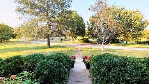 This is a dream home for horse lovers and horses alike! 11+ flat acres of lush bluegrass pastures, a 6 stall barn with large stalls, hay loft. and extra room to have a wash stall and tack area. Off the side of the barn is a large equipment shed. In a addition there is a 90x190 sand arena which is fully fenced.The property sits at the end of a quiet cul-de-sac backing to a large farm and is completely fenced with four plank fencing all in good condition. The charming house sits at the end of a beautiful tree lined driveway, hidden from the road. A large front porch welcomes you into this 3BR 2BTH ranch with both formal and informal living spaces, great for entertaining. 15 minutes to Kentucky Horse Park. The seller is offering a $2000 carpet allowance.