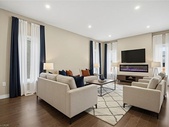 Welcome to 126 Tartan Avenue: an exceptional luxury home offered at an outstanding value. Built by the highly regarded Fusion Homes, this just a few years newer residence situated on a generous 36 x 102 ft lot offers 4 car parking: 2 car garage, 2 Car Driveway. Step inside to a welcoming foyer that impresses with hardwood flooring throughout the main level, matching natural oak stairs. The main floor features 9-foot California ceilings, enhancing the sense of openness and elegance. Beautifully designed kitchen equipped with stainless steel appliances, gorgeous white ceramic brick-style backsplash, quality quartz countertops and extended soft-close cabinetry. The modern living area is bright and inviting, highlighted by a stylish electric fireplace and a wall of large windows that flood the space with natural light, creating an airy and sophisticated atmosphere. Upstairs, you’ll find 4 spacious bedrooms, including 2 luxurious primary suites, each with its own private ensuite bathroom, a highly desirable feature. Primary bedroom boasts a large walk-in closet, while all additional bedrooms are generously sized with ample closet space. A third full bathroom on the upper level adds exceptional comfort. The basement offers excellent ceiling height With rough-ins already in place for a future bathroom and egress windows, the lower level is ready for your personal vision, whether it’s a recreation area, home gym, or additional living space. Outside, the partially fenced backyard requires fencing on just one side to be fully enclosed, providing privacy and a perfect setting for kids to play, family gatherings, or outdoor entertaining. Ideally located in a vibrant, family-oriented neighbourhood, this home is steps from Scot’s Pine Park, RBJ Schlegel Park, Top Rated Schools, with walking distance to plazas and quick access to Highway 401, 7/8. A rare opportunity to own a luxury home in an unbeatable location at a fantastic price. Book your private showing today!