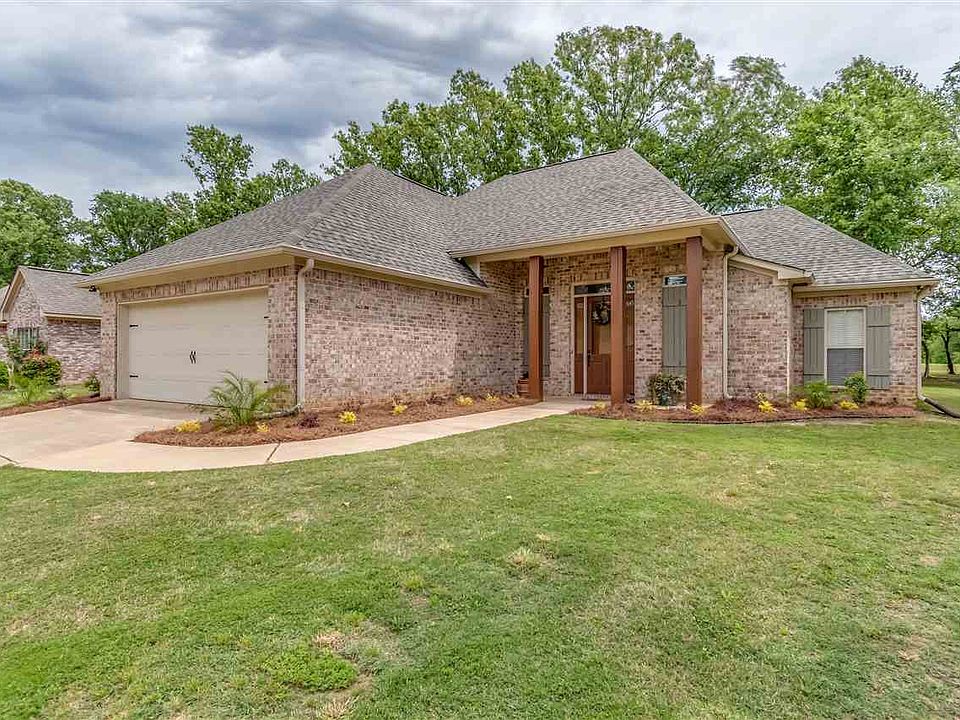 Nestled in the back of Bainbridge subdivision sits this house on a dead end street with no through traffic, except for the neighbors, and the backyard backs up to over 400 acres of farmland. No fence is there to block the pretty country views giving you great sights to see the big opens skies for those beautiful sunsets, even has an extended patio and a partially covered back porch. Inside you'll marvel at all the custom designs. This house feels like new, built in 2014 and has a new roof and new gutters, installed in March 2020. Each bedroom has its own full bathroom for a total of 3 bedrooms and 3 bathrooms in the house. Exposed beams and brick give it lots of eye appeal and divides the kitchen and family living room yet gives it that open feeling. The cook in your family will love the chefs kitchen with its double ovens, gas cook top with a pot filler. Granite counter-tops and stainless steel appliances. Large walk-in pantry, and more than adequate counter space. There is a room for an office and the laundry room has an abundance of cabinets and a deep laundry room sink. Keeping room off of kitchen with a fireplace for extra seating and room or could use this space for a dining room instead. Large master bath with double vanity, jetted tub and separate tiled shower. Huge walk in closet. Split floor plan and lots to love. To schedule an appointment to see this house in person, you may contact any licensed MS Realtor to show it to you. To preview online, click on the photos for your virtual tour. Don't let it slip away, call your agent today! USDA 100 percent financing available to qualified buyers.