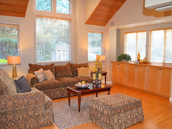 Here is the opportunity to live close to town and have a great country feel. You are less than five minutes to Aptos Village and just a bit further to the best beaches on the Monterey Bay. Live in a beautiful community on big double lot with peace and privacy. Great architectural style and contrast. Among the distinctive features of the home are the open beam ceilings, wood and marble floors, and large windows. One ground floor bedroom has a private entrance. The master bedroom has two walk in closets. The master bath has a sunken tub, luxuriously surrounded by views of the trees and the serene environment. The breakfast room is filled with light and opens to a sunny patio. The kitchen has a walk in pantry. An expansive back deck has a hot tub. This unique property has the feel of a retreat or could be a perfect family home with room to play and entertain.