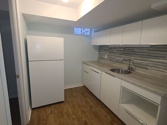 Spacious lower floor apartment with separate entrance in an elegant end-unit town home nestled in the quiet Villas of Olde Woodbridge. The unit is split between two floors, with a bright living room on ground floor and one renovated bedroom and kitchen in the basement floor. This lower floor apartment comes with its own exclusive laundry (not shared) and includes 1 parking space.