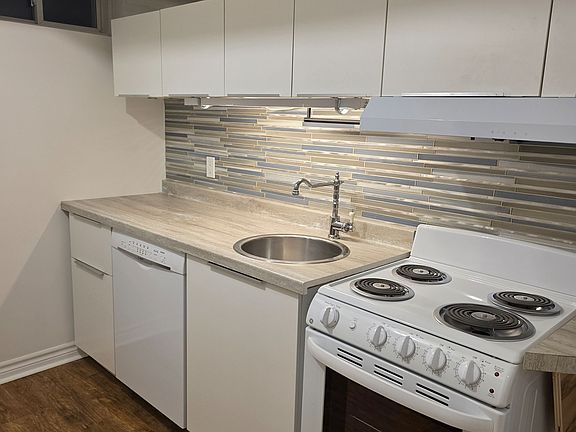 Spacious lower-floor apartment with separate entrance in an elegant end-unit townhome nestled in the quiet Villas of Olde Woodbridge. The unit is split between two floors, with a bright living room on ground floor and one renovated bedroom and kitchen in the basement floor. This lower-floor apartment comes with its own exclusive laundry (not shared) and includes 1 parking space.