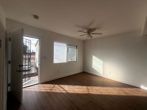 Welcome to 126 W 59th St, Los Angeles, CA 90003 a freshly updated 2-bedroom, 1-bathroom apartment offering a comfortable and modern living experience in the heart of South LA. This bright and open unit features wood-style flooring throughout, fresh white walls, and plenty of natural light from large windows. The spacious living room is equipped with a ceiling fan and flows effortlessly into the kitchen, which boasts rich dark cabinetry, ample counter space, and a window above the sink that keeps the space airy and welcoming. Both bedrooms are generously sized, each with its own ceiling fan, large windows, and closet space. The bathroom is clean and functional with crisp white subway tile, a sliding glass shower door, and a pedestal sink beneath a mirrored vanity. The unit sits on a 2,699 square foot lot and includes a private gated front entrance with steps leading up to your front door. This home is conveniently located near public transportation, local shops, restaurants, and major freeways, making commuting and daily errands a breeze. With its modern updates, natural light, and efficient layout, this apartment is the perfect place to call home in Los Angeles. 1 parking. Water included. No pets. No laundry available.