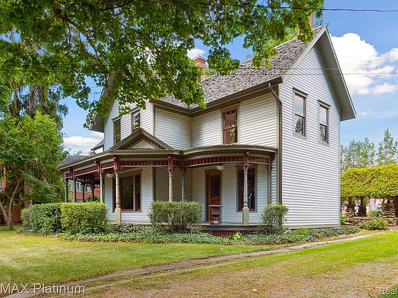 MARSHALL, MI - HISTORIC GOTHIC REVIVAL in the heart of downtown Marshall. Stately sugar maples & willowy spirea frame this beautiful home on a large lot. One of a kind and unique property. There have been two extensive renovations dedicated to preserving the original integrity of the home. A sweeping Queen Anne style porch is the perfect place to relax & enjoy life. First floor Master Suite. Stunning wood floors/trim throughout include restored oak, pine, curly & birdseye maple. Signed stained glass windows, a charming copper kitchen sink, cast iron pump & an old fashioned gas stove are only some of the beautiful features this home offers. Fireplace with marble surround in the Dining Room for staying cozy during cold winter months. Fireplace and all chimneys have been redone. Rooms are large and spacious. Both full bathrooms have been updated. Delightful touches are everywhere is this incredible home. All plumbing, electrical & heating system have been updated. All copper downspouts & gutters. There is a new access door at the entry to the walkout steps to the basement. Trees & flora surrounding the house are spectacular & there are grapes! Walk to downtown Marshall & enjoy the variety of shops, cafes/eateries & ambience that this wonderful city has to offer. Easy access to I-94, shopping, hospital & schools.