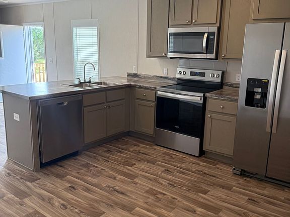 Nestled between the Gulf of Mexico's sugar white shores and the lush pines of the beautiful distinct destination of DeFuniak Springs. This contemporary coastal style mobile home has all the convenience and comfort of shopping and dining options. This vibrant location offers biking and paddle boarding along with delectable dining experiences. This home has a washer and dryer connection with a large laundry room, brand-new stainless-steel appliances with modern style hardwood floors. This kitchen captures the luxury of open-air dining with a durable and functional design. This home is clean architecture with an appealing floor plan with an open feel with bright and airy rooms complemented with clean lines which creates a relaxing atmosphere.