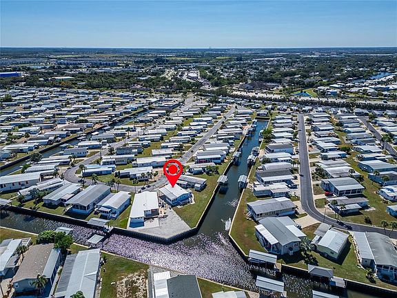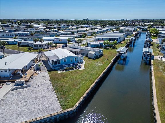 KEY WATERFRONT LOT! This fully furnished, move-in-ready 2-bedroom, 2-bath home is priced to sell quickly. Located in a quiet corner of the resort-style 55+ community of Caribbean Isles Residential Cooperative, you will enjoy paying NO LOT RENT and NO CDD. The low monthly maintenance fee covers professional management, heated pool, lagoon park, clubhouse, and more. Features include a NEW ROOF, new low-maintenance river rock landscaping, an enclosed screened-in porch overlooking the canal (which leads to Tampa Bay), and a large deck - perfect for sunsets and dolphin watching. The primary suite opens directly to the deck for serene morning views. Bring your suitcase and start living your Florida dream!