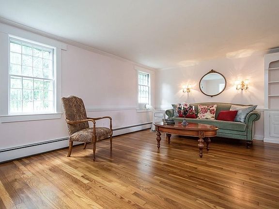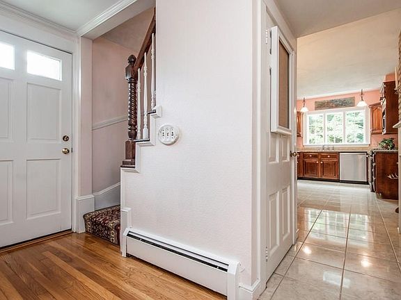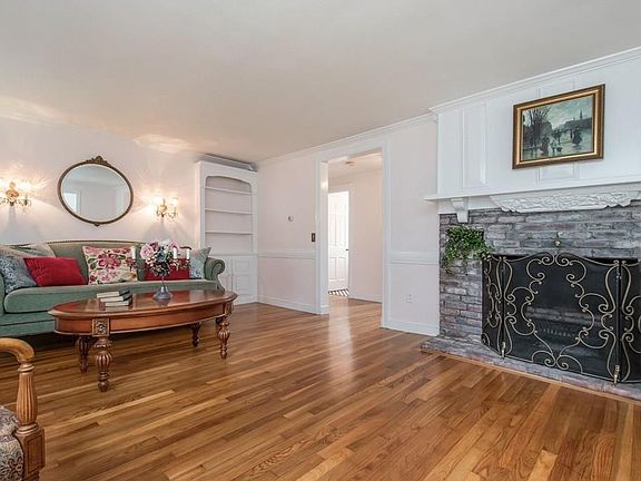 Full of character and charm this well maintained and tastefully decorated 3 bedroom/2.5 bathroom Colonial home. Located in neighborhood setting w/perennial gardens and level landscaped yard. Open concept living room w/fireplace, hardwood floors and french doors. Dining room w/bay window, vaulted ceiling and hardwood floors. Updated kitchen w/custom cabinets, gas stove, stainless steel appliances, granite countertops, tile floor and dining area. First floor master suite w/hardwood floors, walk-in closets and master bathroom. Home office w/hardwood floors and closet. First floor half bathroom w/laundry. Family room w/hardwood floors and french doors leading to patio area and beautiful backyard. Second floor has two bedrooms both w/hardwood floors and closets. Full second floor bathroom with tub/shower and tile floor. Basement for storage. Two car garage w/storage. Gas heat. Town Water. 2006 addition/updates. Close to major highways for commuting. Excellent top-rated schools.